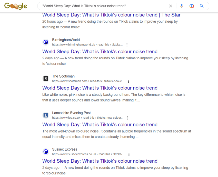 A good indicator of whether or not syndicated content is passing value is to check whether or not it’s indexed (whether or not it shows up in the organic search results). If the coverage is not being indexed in search engines, it may be a sign that it’s canonicalised*, low quality, or not unique enough. You can get a good idea whether a piece of coverage is indexed or not by doing a “site:[URL]” search.