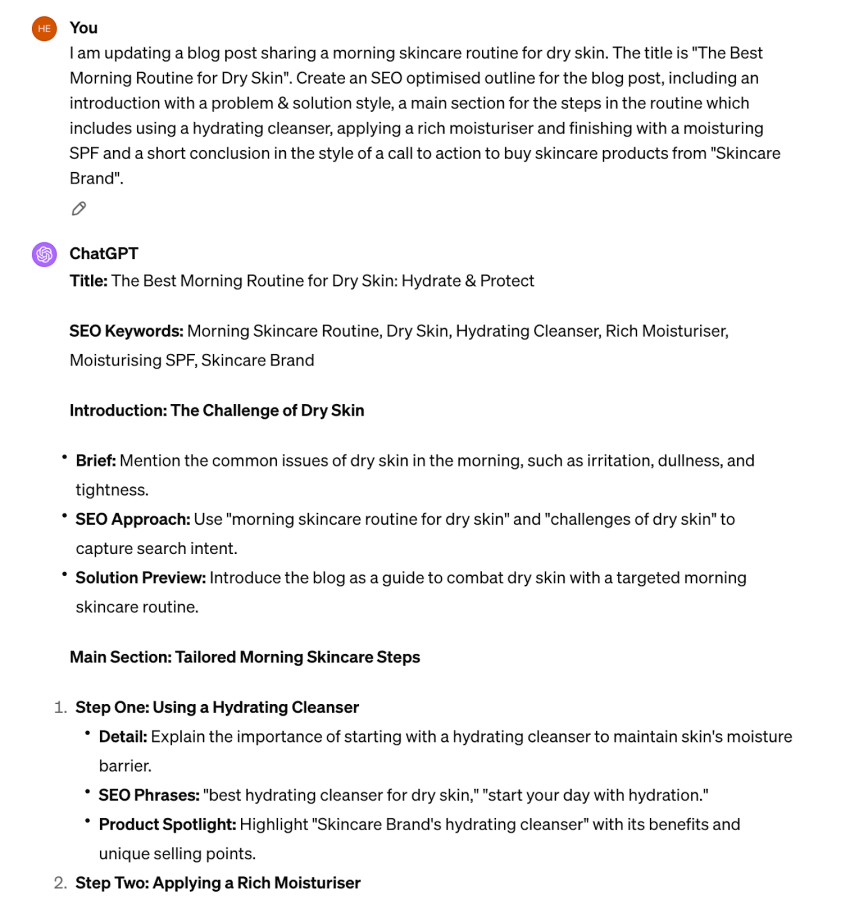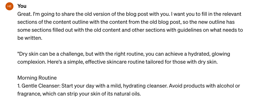 Now you’ve got your outline, it’s time to ask ChatGPT to incorporate your existing content into the outline.