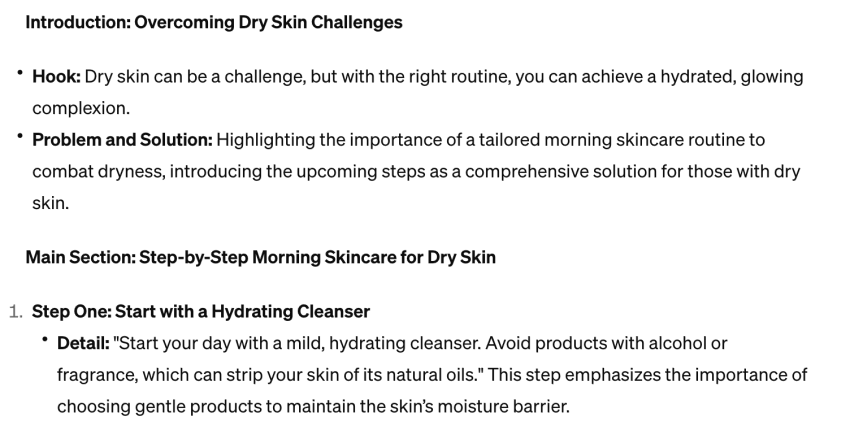 For example, you could add sections to help people identify if they have dry skin, what ingredients to avoid and general guidelines to follow when creating their own dry skin skincare routine.