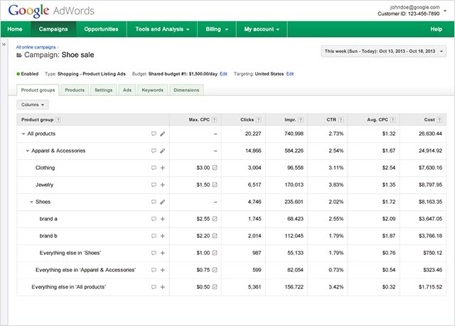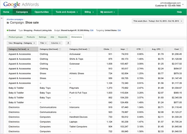 shopping reportingThis set up also brings quite a few exciting new reporting features that will help advertisers monitor their campaigns, with Google now offering benchmarking data on both the max CPCs and CTRs as well as information on impression share. Google have also said that they will be releasing a bid simulator tool to help show advertisers a prediction as to how many impressions their ads could receive with a higher (sorry, Freudian slip) given bid.