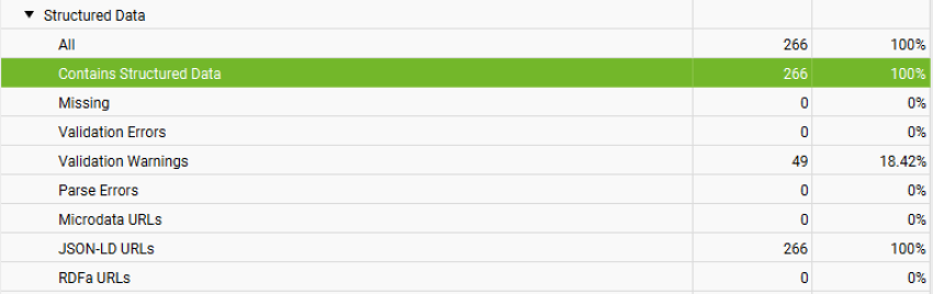 You can easily identify pages that lack schema markup or have incorrectly implemented schema markup from within the Structured Data tab. Screaming Frog allows you to filter and sort pages based on schema markup, enabling you to focus on areas that require attention.