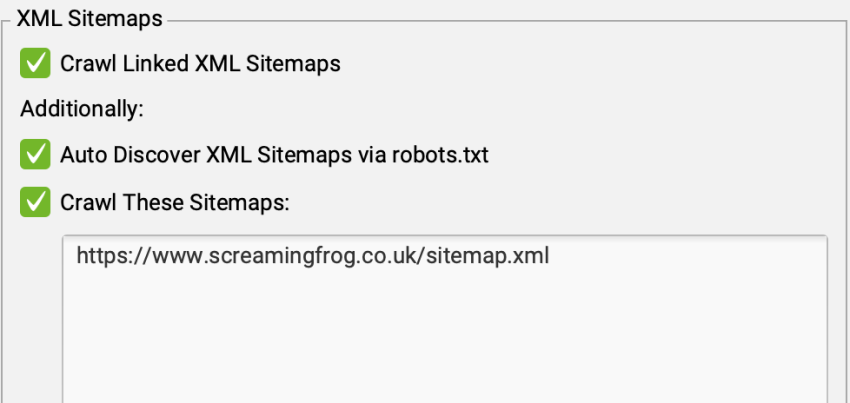 An important and useful feature is the ability to crawl the XML sitemap, which you will find in the first Crawl tab.