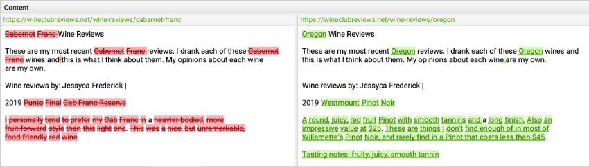 If you were to start your journey on my website on the Nakedwines.com review, you could link to the comparison page where Nakedwines.com is first. The reverse is true for the Winc review. This method makes for a relevant and topical user experience, but these pages are essentially the same, and this is not good for search engine optimization.
