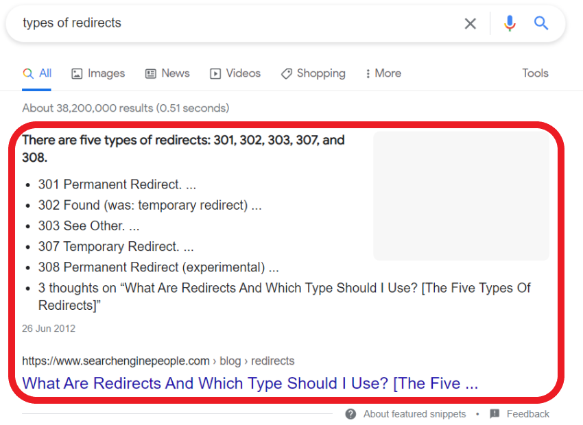 Headings can help a page to target relevant featured snippets (a section of text taken from a page and displayed at the top of the SERP for certain keywords):
