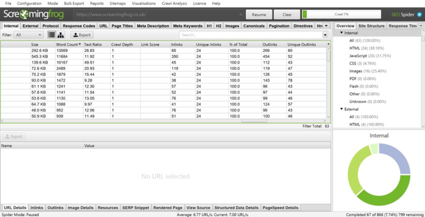 In the snapshot above, we have crawled a site and navigated to the Word Count column within the Internal tab of the SEO Spider. Here you can sort the column or export the data, to show which pages have the lowest word counts. If the word count of a particular page is unusually low, this can prompt further investigation and potentially on-page content improvements.